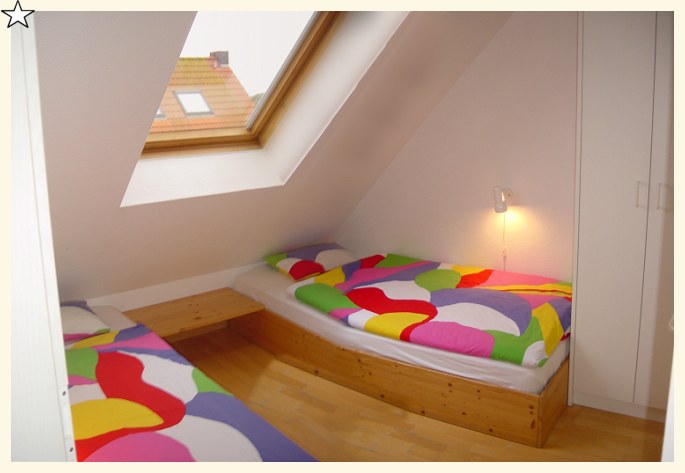2. und 3. Etage - Südseite - Billstraße 24 C. Wohnung über zwei Etagen. 3 x Schlafzimmer, 1 x mit Doppelbett in der 2.Etage, 1 x mit Doppelbett in der 2 .Etage ( plus Reisebett ), 1 x mit 2 Einzelbetten in der 2 .Etage, Wohnraum 2.Etage mit großzüger Südseiten-Terrasse, separate Küche in 2.Etage, Badezimmer mit Dusche/WC in 2.Etage und zweites Duschbad in der 3.Etage. |