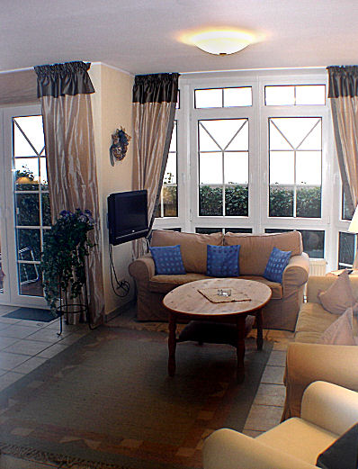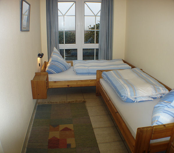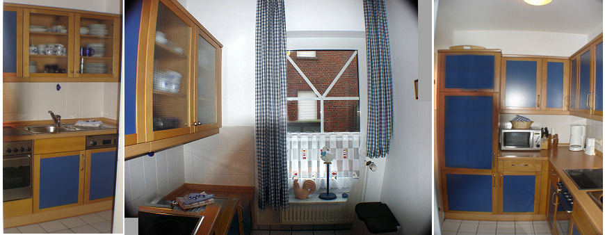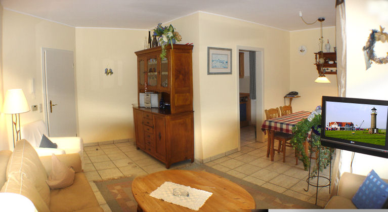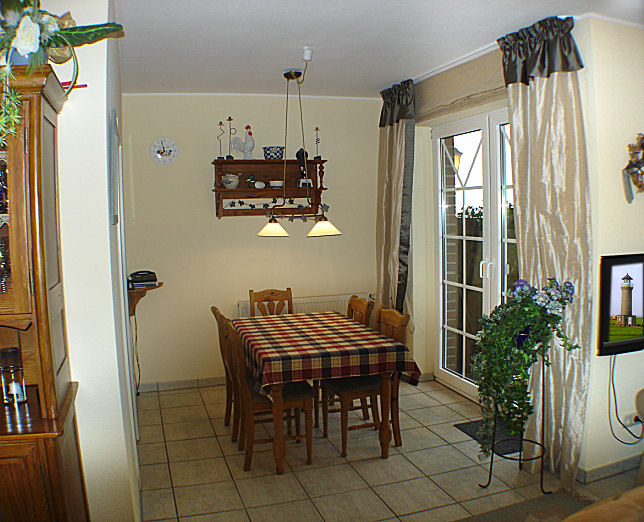 Ausstattung: 2 Schlafzimmer, 1x mit Doppelbett, 1 x mit 2 Einzelbetten, (Reisebett möglich), Wohnraum mit separate Küche, Badezimmer mit Dusche/WC und Waschmaschine, Terrasse Richtung Wattenmeer |