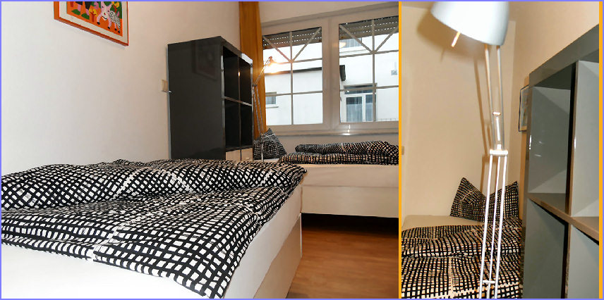 2 Schlafzimmer, 1x mit Doppelbett, 1 x mit Etagenbetten, (Reisebett möglich), Wohnraum mit Küchenzeile, Badezimmer mit Dusche/WC